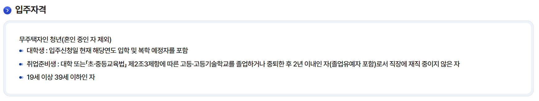 - 입주 자격에 맞는지 확인